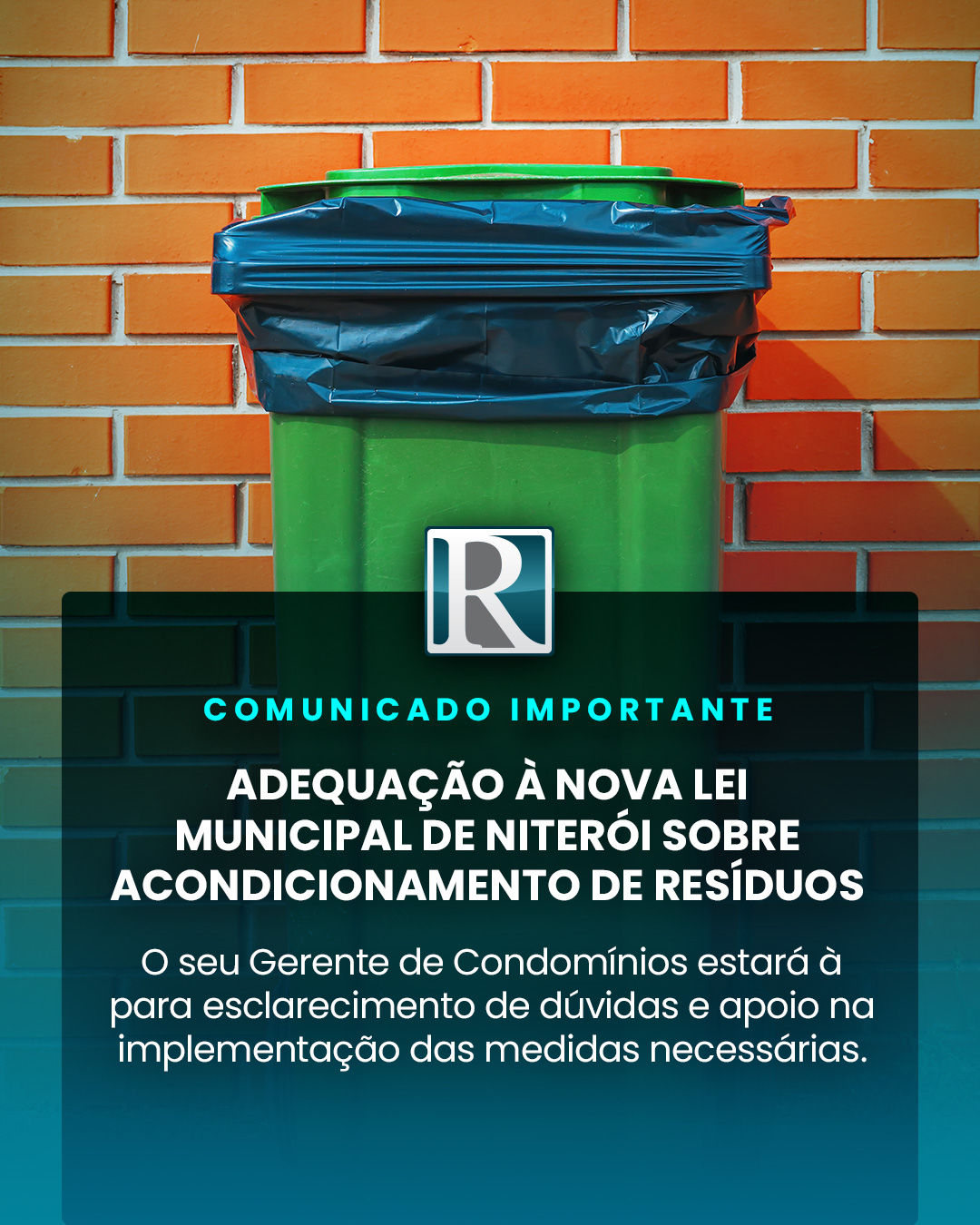 Com o objetivo de manter nossos Condomínios em plena conformidade com a legislação vigente, informamos que passou a vigorar recentemente a Lei Municipal nº 4.231/2025, de Niterói, que altera o artigo 9º da Lei nº 1.212/1993 e estabelece novos critérios para o acondicionamento e a disposição dos resíduos nos prédios multifamiliares.