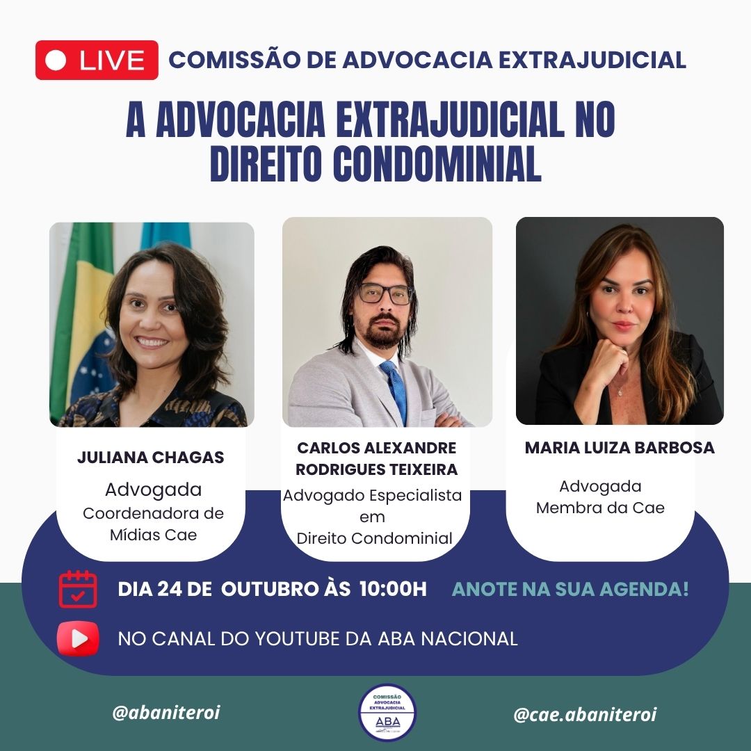 🎥 Live imperdível promovida pela Comissão de Advocacia Extrajudicial da ABA Niterói no YouTube da ABA Nacional!